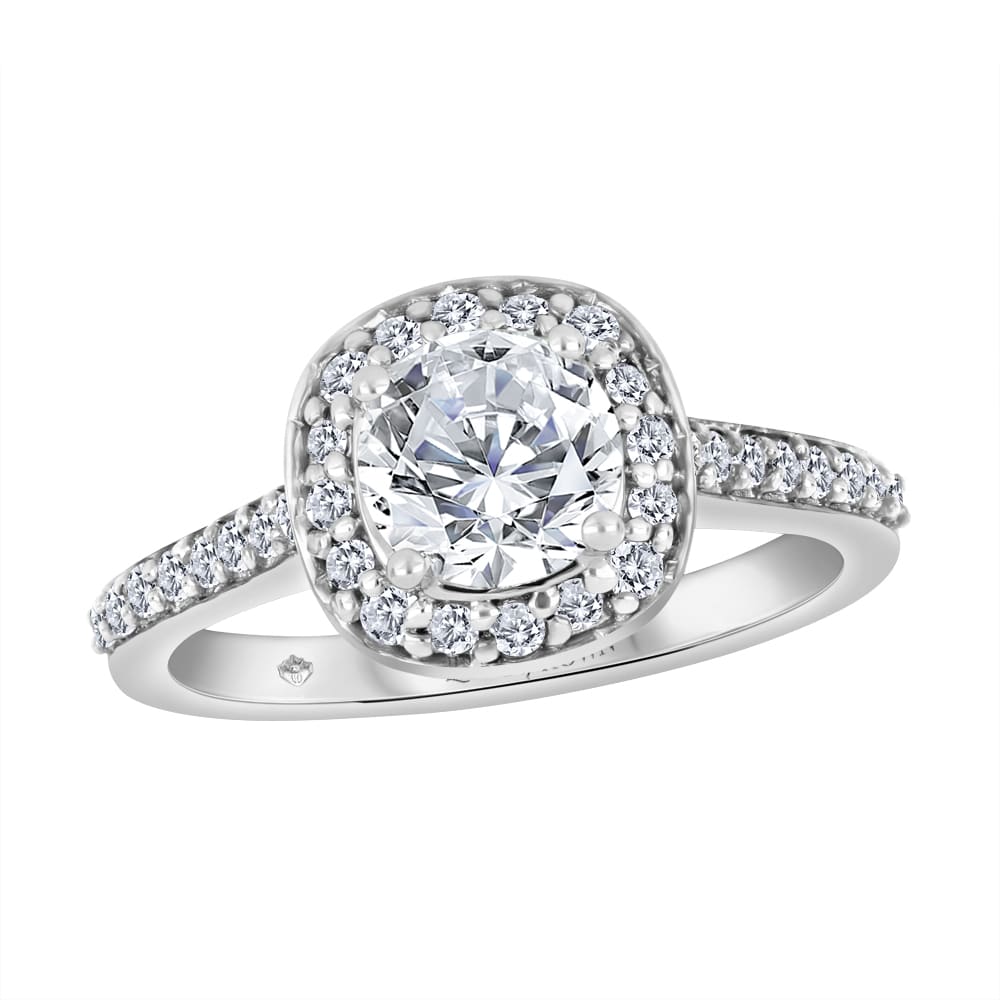 Round Center Diamond with Cushion Halo & Accent Diamonds (White Gold)